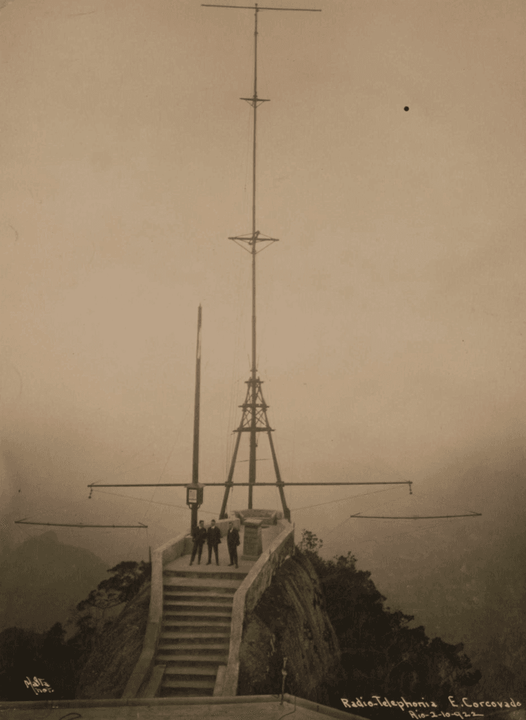 Para testar essa nova tecnologia, os americanos instalaram uma antena no pico do Morro do Corcovado, onde hoje se encontra o Cristo Redentor. A primeira transmissão foi um discurso do presidente Epitácio Pessoa, captado em Niterói, Petrópolis, na Serra Fluminense e até em São Paulo, onde foram instalados receptores.